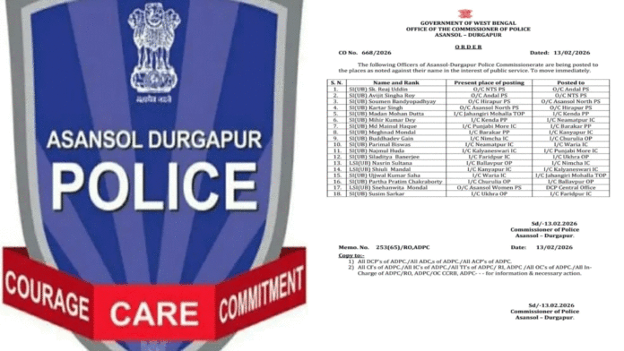 সন্তোষ কুমার মণ্ডল,আসানসোলঃ- আসানসোল দুর্গাপুর পুলিশ কমিশনারেট (এডিপিসি)-তে বড় প্রশাসনিক রদবদল করা হল। শুক্রবার এক নির্দেশিকা জারি করে জানানো হয়েছে জনস্বার্থ ও প্রশাসনিক কাজকর্ম আরও সুষ্ঠুভাবে পরিচালনার লক্ষ্যে এই রদবদল। পাশাপাশি সংশ্লিষ্ট সকল আধিকারিককে অবিলম্বে তাঁদের নতুন কর্মস্থলে যোগদানের নির্দেশ দেওয়া হয়েছে।