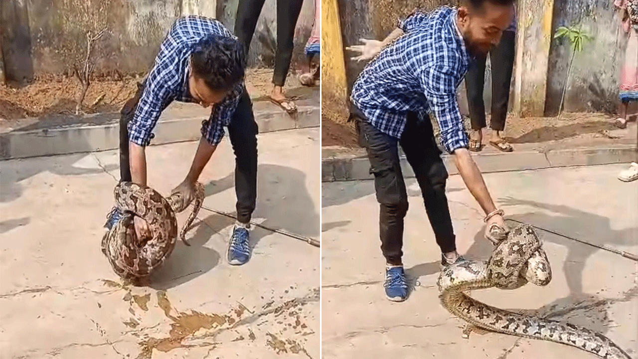 অন্যদিকে বিশালাকার ওই অজগর ধরতে গিয়ে এক যুবক জখম হন। তার হাতে কামড়ে দেয় সাপটি। তাকে দ্রুত পিঠাকিয়ারি গ্রামীণ হাসপাতালে নিয়ে যাওয়া হয়।