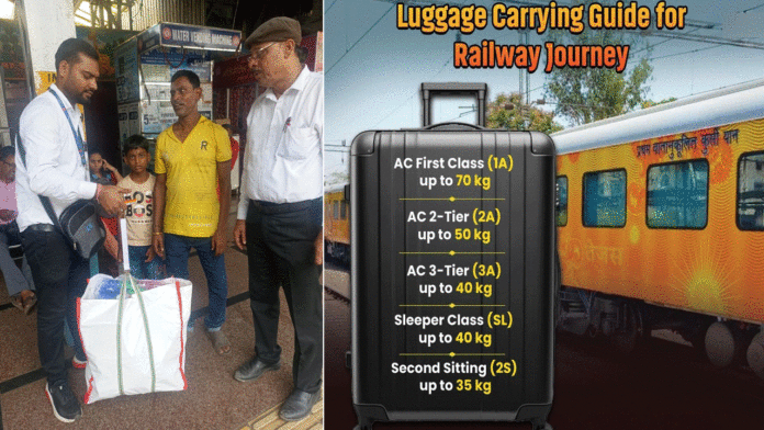 নিয়ম অনুযায়ী এসি ফার্স্ট ক্লাসের যাত্রীরা ৭০ কেজি, এসি টু টায়ারের যাত্রীরা ৫০ কেজি, এসি থ্রি টায়ার ও স্লিপার ক্লাসের যাত্রীরা ৪০ কেজি এবং পর্যন্ত সাধারণ কামরার যাত্রীরা সর্বোচ্চ ৩৫ কেজি মালপত্র নিয়ে উঠতে পারবেন ট্রেনে।