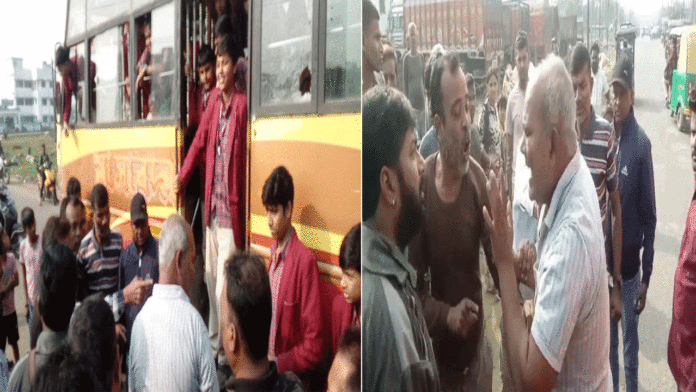 মঙ্গলবার সকালে আসানসোল কলেজিয়েট স্কুলের সামনে একটি স্কুল বাসের সাথে একটি চারচাকা গাড়ির সংঘর্ষের ঘটনা ঘটে। জানা গেছে, রাস্তায় ভিড় থাকার কারণে পেছনের দিকে থাকা ওই চারচাকা গাড়ির সঙ্গে স্কুল বাসের সংঘর্ষ হয়। অভিযোগ এরপর কেউ কিছু বুঝে উঠার আগেই পড়ুয়া ভর্তি স্কুল বাসের দিকে পাথর ছুঁড়ে মারেন গাড়ি চালক। যার জেরে স্কুল বাসের সামনের দরজার দিকে জানালার কাঁচ ভেঙ্গে যায় এবং সিটে বসে থাকা এক পড়ুয়া জখম হয়। এরপর বাস চালক বাস থামিয়ে নেমে ঘটনার প্রতিবাদ করেন। অভিযোগ এতে ওই গাড়ির চালক বাস চালকের উপর চড়াও হন। প্রত্যক্ষদর্শীদের দাবি দুপক্ষই হাতাহাতিতে জড়িয়ে পড়েন।