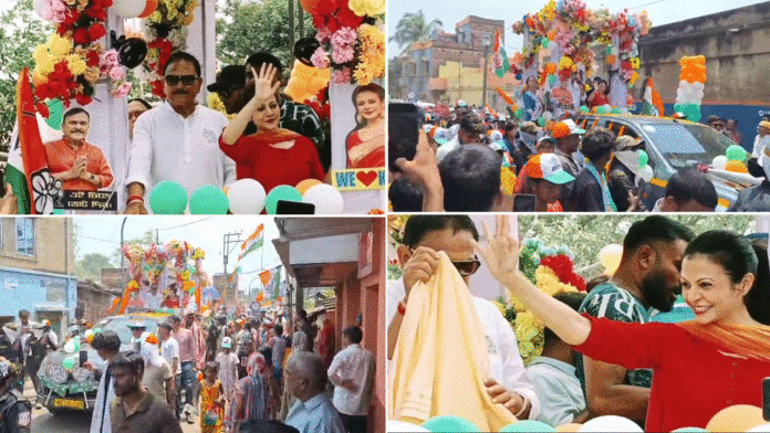 সংবাদদাতা,দুর্গাপুরঃ- শনিবার জামুড়িয়ায় তৃণমূল কংগ্রেস প্রার্থী হরেরাম সিং-এর সমর্থনে এক বর্ণাঢ্য রোড শো-তে অংশ নিলেন ‘টলিউড কুইন’ তথা সাংসদ কোয়েল মল্লিক। এদিন অভিনেত্রীকে ঘিরে দলীয় কর্মী-সমর্থকদের পাশাপাশি সাধারণ মানুষের উন্মাদনা ছিল চোখে পড়ার মতো। দলীয় পতাকা ও স্লোগানে মুখরিত হয়ে ওঠে গোটা এলাকা।