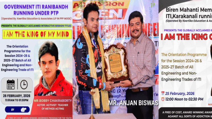সংবাদদাতা,বাঁকুড়াঃ- বিশিষ্ট সমাজকর্মী ববি চক্রবর্তী বাঁকুড়া জেলায় যুবসমাজের জন্য তার বিশ্বব্যাপী, পুরস্কারপ্রাপ্ত সচেতনতামূলক আসক্তি বিরোধী অভিযান কর্মসূচির ৪৮১তম এবং ৪৮২তম অধিবেশন পরিচালনা করতে চলেছেন, যার শিরোনাম ‘আমি আমার মনের রাজা’।