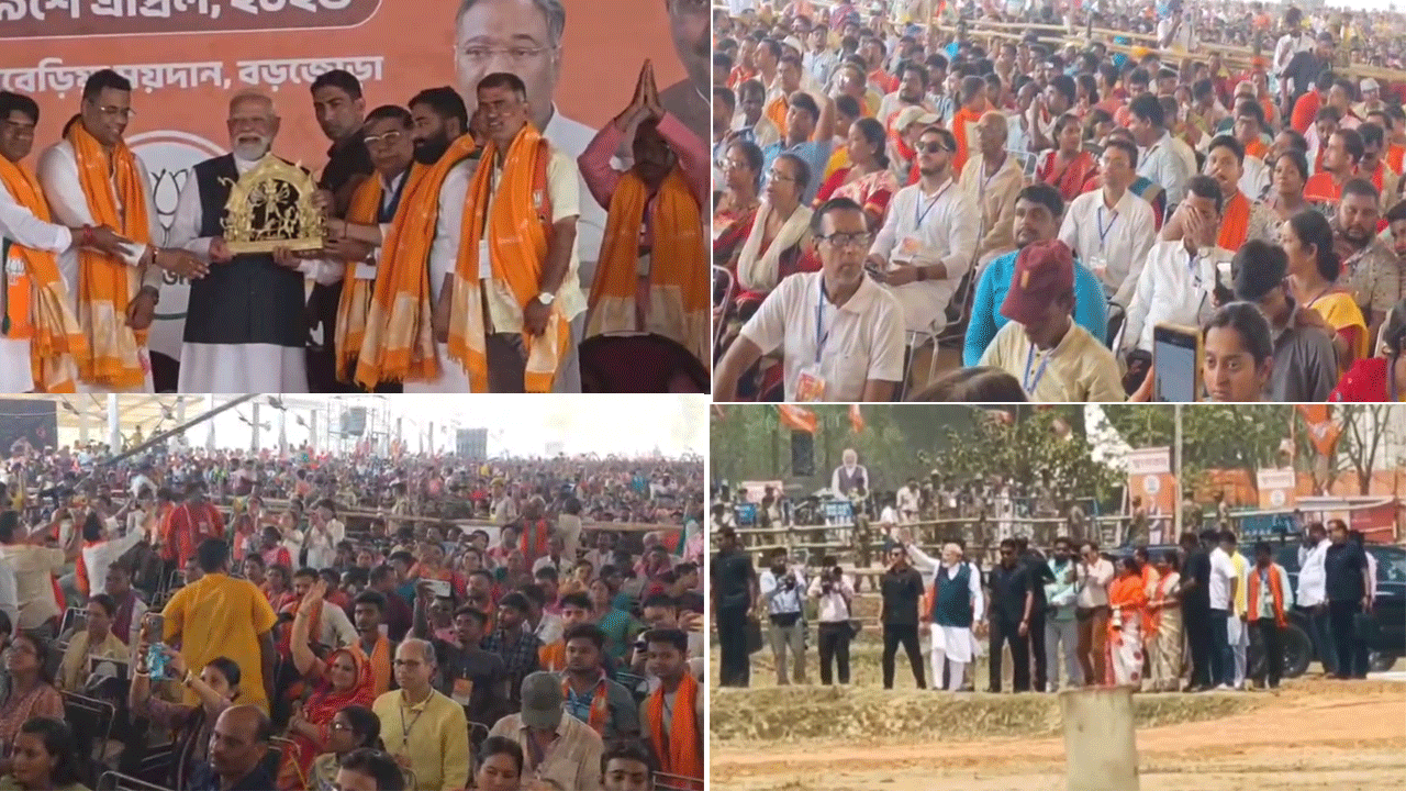 সংবাদদাতা,বাঁকুড়াঃ- বাঁকুড়ার বড়জোড়ার জনসভা থেকে সংসদে মহিলা সংরক্ষণ বিল নিয়ে সরব হলেন প্রধানমন্ত্রী। সংসদে মহিলা সংরক্ষণ বিল পাস না হওয়ার জন্য সরাসরি দুষলেন কংগ্রেস ও তৃণমূল কংগ্রেসকে। প্রধানমন্ত্রী অভিযোগ করে বলেন, “সংসদে মহিলা সংরক্ষণ বিল পাশের সময় ভারতীয় জাতীয় কংগ্রেস ও তৃণমূল কংগ্রেস বাধা সৃষ্টি করেছিল। এই দুই দল কখনও মহিলাদের কল্যাণ ও নিরাপত্তার বিষয়ে আন্তরিক নয়, যার ফলে রাজ্যে নারীদের সম্মান ও সুরক্ষা প্রশ্নের মুখে পড়েছে। পাশাপাশি এদিনের সভা থেকে মহিলাদের মনজয়ের চেষ্টা করেন মোদী। রাজ্যে বিজেপি ক্ষমতায় এলে একাধিক নারী কল্যাণ প্রকল্পের প্রতিশ্রুতি দেন তিনি। তার মধ্যে গর্ভবতী মহিলাদের জন্য ২১ হাজার টাকা এবং সন্তানের জন্মের পর অতিরিক্ত ৫ হাজার টাকা আর্থিক সহায়তার কথা জানান। পাশাপাশি মুদ্রা ঋণ প্রকল্পে ২০ লক্ষ টাকা পর্যন্ত ঋণের সুবিধার কথাও উল্লেখ করেন।
