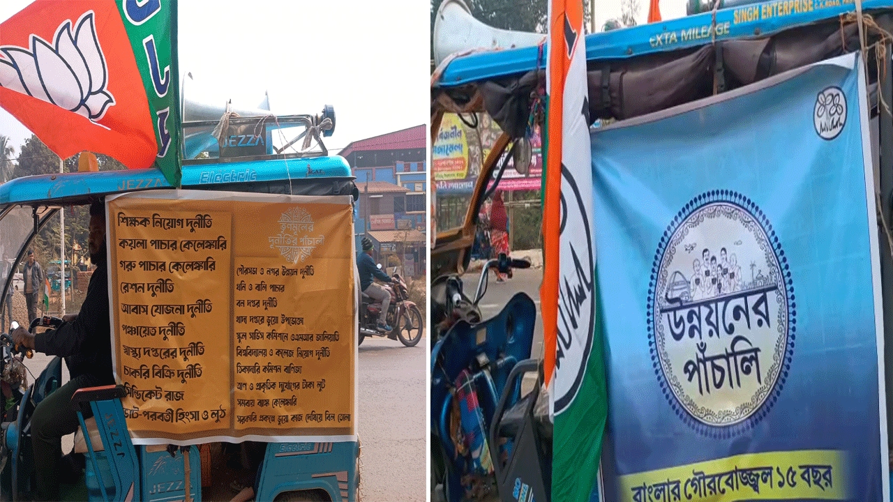 প্রসঙ্গত দলের শীর্ষ নেতৃত্বের নির্দেশে রাজ্যের অন্যান্য অংশের সঙ্গে তালডাংরা বিধানসভার সিমলাপালেও ‘উন্নয়নের পাঁচালি’ কর্মসূচী শুরু করেছে শাসক তৃণমূল। ওই কর্মসূচীতে দলের বিধায়ক ফাল্গুনী সিংহ বাবু সহ তৃণমূল নেতৃত্ব উপস্থিত থাকছেন। ঠিক তখনই উন্নয়নের পাঁচালির পাল্টা ‘দুর্নীতির পাঁচালি’ নিয়ে আসরে হাজির হয়েছে গেরুয়া শিবির। গত কয়েক দিন ধরে দিনভর টোটোতে মাইক বেঁধে পাঁচালির সূরে শাসকের দুর্নীতির খতিয়ান তুলে ধরা হচ্ছে সিমলাপাল গ্রামপঞ্চায়েতে বিভন্ন গ্রামে গ্রামে।