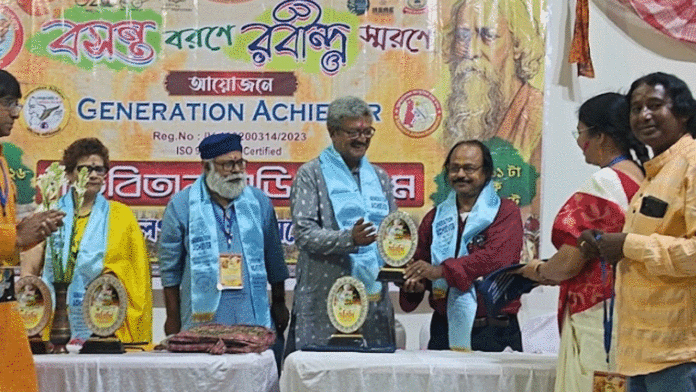 সৌভিক সিকদার, বীরভূম -: রবীন্দ্রচেতনাকে বর্তমান প্রজন্মের কাছে পৌঁছে দেওয়া, নতুনের আবাহনে সাহিত্যচর্চাকে উৎসাহিত করার লক্ষ্যে কবিগুরুর সৃজনের আবহে লাল মাটির শান্তিনিকেতনে, বসন্তের পলাশ রাঙা বিকেলে অনুষ্ঠিত হলো ‘বসন্ত বরণে রবীন্দ্র স্মরণে’ শীর্ষক সাহিত্য ও সাংস্কৃতিক অনুষ্ঠান। বোলপুরের গীতবিতান অডিটরিয়ামে আয়োজিত অনুষ্ঠানের মূল উদ্যোক্তা হলো ‘জেনারেশন অ্যাচিভার’। যৌথভাবে সহযোগিতার হাত বাড়িয়ে দেয় ‘সাহিত্য দিশারী’ এবং ‘সাংস্কৃতিক মহামঞ্চ। প্রদীপ প্রজ্বলনের মাধ্যমে অনুষ্ঠানের শুভ সূচনা করেন আমন্ত্রিত বিশিষ্ট অতিথিরা।