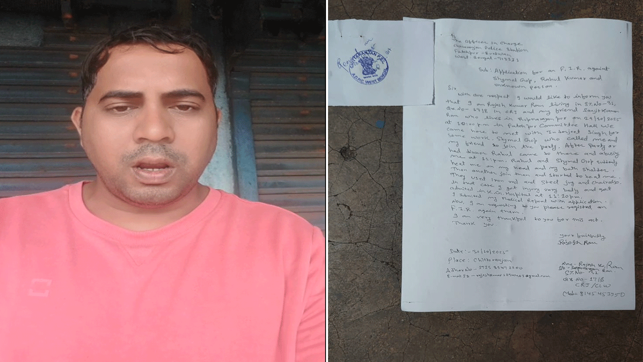 চিত্তরঞ্জনের ৩১ নং স্ট্রিটের ১৭/বি কোয়ার্টারের বাসিন্দা রাজেশ কুমার রামের অভিযোগ, গত ২৯ অক্টোবর বুধবার রাতে চিত্তরঞ্জনে ফতেপুর কমিউনিটি হলে স্থানীয় কয়েকজন তৃণমূল কর্মী তার উপর হামলা চালায় ও মারধর করে। এই আক্রমণে তাঁর মাথা ফেটে যায়। কাঁধেও গুরুতর আঘাত পান। ঘটনার পরে তিনি চিত্তরঞ্জন থানায় যান। গোটা বিষয়টি শোনার পরে থানা থেকে তাঁকে চিত্তরঞ্জন কেজি হাসপাতালে পাঠানো হয়। যেখানে তিনি চিকিৎসাধীন ছিলেন। বৃহস্পতিবার তাঁকে হাসপাতাল থেকে ছেড়ে দেওয়া হয়। এরপর তিনি আবার থানায় গিয়ে অভিযোগ দায়ের করেন। কিন্তু তিনি অভিযোগের কোনও কপি পাননি বলে দাবি করেছেন। পাশাপাশি ন্যায়বিচারের আবেদন করেছেন।