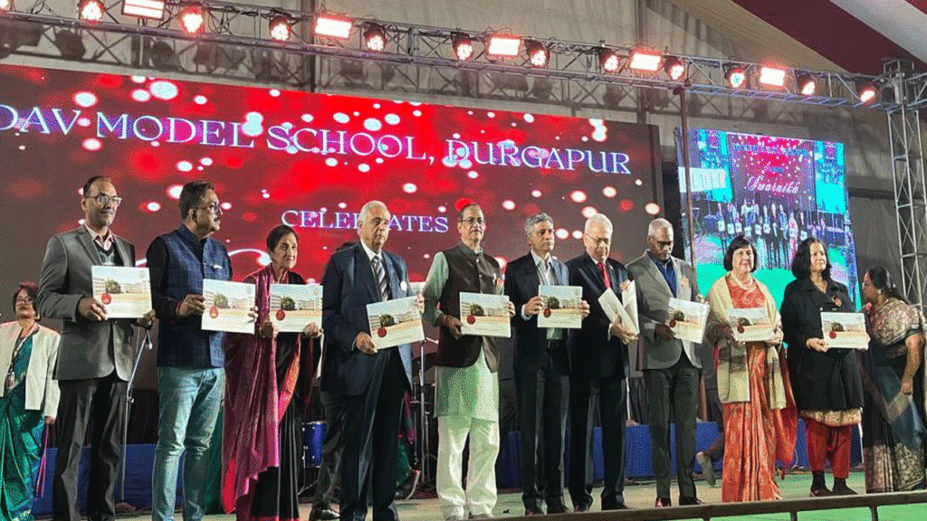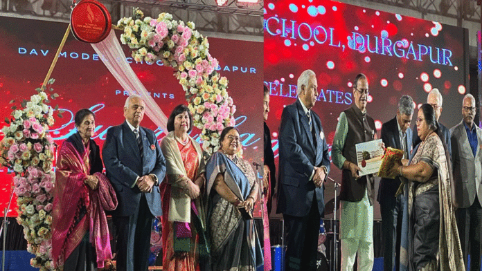 মনোজ সিংহ, দুর্গাপুরঃ– দুর্গাপুর শিল্পাঞ্চলের ইস্পাত নগরীর জে এম সেনগুপ্ত রোড এর ওপর অবস্থিত ডিএভি মডেল স্কুল দুর্গাপুর, আজ তাদের সুবর্ণ জয়ন্তী বর্ষ উদযাপন করল। আজ থেকে প্রায় ৫০ বছরেরও বেশি আগে ১৯৭৫ সালে তিনটি শ্রেণিকক্ষ,মাত্র তিনজন শিক্ষক-শিক্ষিকা ও ৩০ জন ছাত্রছাত্রী নিয়ে শুরু হয়েছিল ডিএভি মডেল স্কুলের পথ চলা। বর্তমান কালে প্রায় ৫ হাজারেরও বেশি ছাত্রছাত্রী পাঠ্যরত এই সর্বভারতীয় ইংরেজি মাধ্যম স্কুলে। গত কয়েকদিন ধরেই ইস্পাত নগরী বিভিন্ন রাস্তাঘাট কে নববধূর সাজে সাজিয়ে স্কুল জানান দিয়েছে আগামীতে তাদের স্বর্ণময় উপস্থিতি। ইস্পাত নগরীর বিভিন্ন রাস্তাতে বড় বড় ব্যানার, পোস্টার ও ওয়েলকাম গেটে ভোরে গিয়েছে। বিভিন্ন রাস্তার ওপর রংবেরঙের আলপনা ও রেখাচিত্রে ফুটে উঠেছে স্বর্ণময় ইতিহাসের ইতিকথা।
