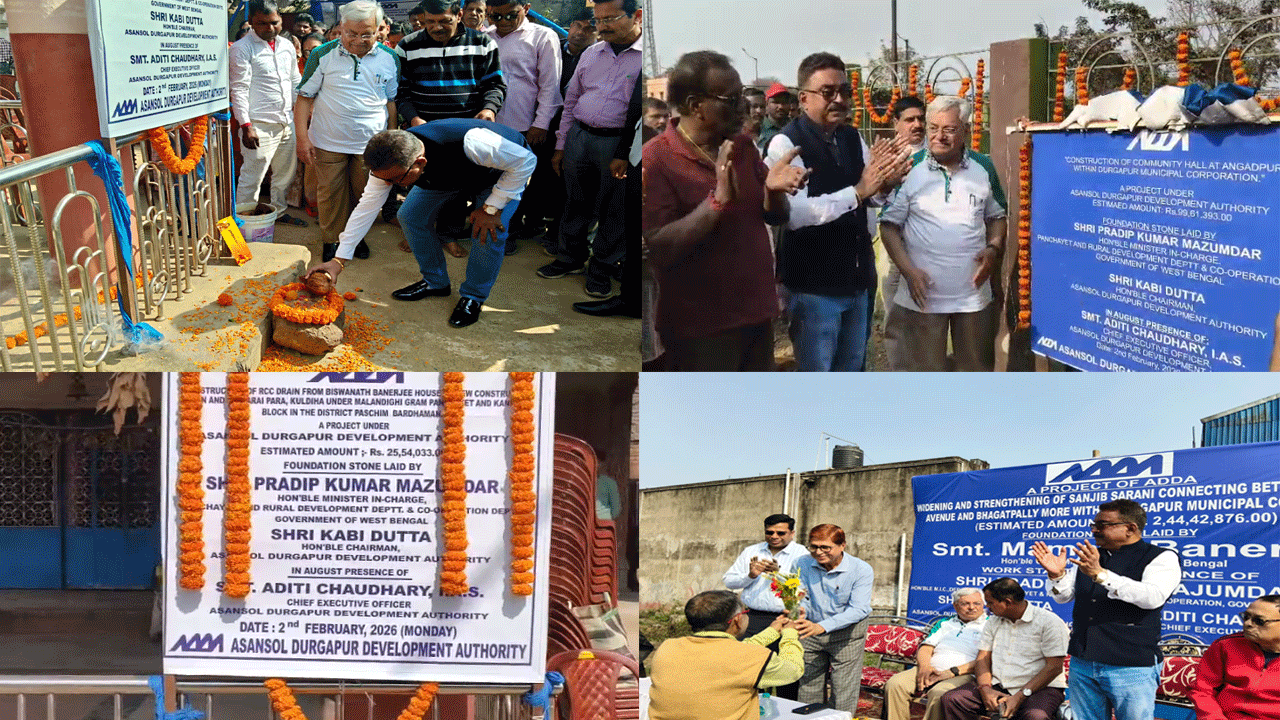নিজস্ব সংবাদদাতা,দুর্গাপুরঃ– আসানসোল দুর্গাপুর উন্নয়ন পর্ষদ দুর্গাপুর মহকুমা জুড়ে পরিকাঠামোগত নানা উন্নয়নমূলক কাজ শুরু করেছে। তারই মধ্যে বেশ কয়েকটি প্রকল্পের শিলান্যাস হল সোমবার।