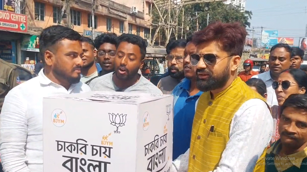 নিজস্ব সংবাদদাতা,দুর্গাপুরঃ- চাকরির দাবিতে অভিনব কর্মসূচি বিজেপি যুব মোর্চার। মুখ্যমন্ত্রী মমতা বন্দ্যোপাধ্যায়কে চিঠি পাঠিয়ে চাকরির দাবি জানাতে পথে নামল বিজেপি।