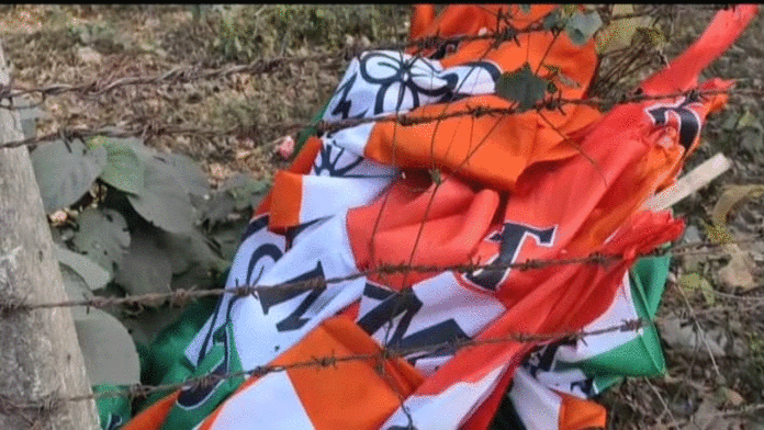তৃণমূল কংগ্রেসের পতাকা খুলে ফেলে দেওয়ার ঘটনাকে কেন্দ্র করে উত্তেজনা