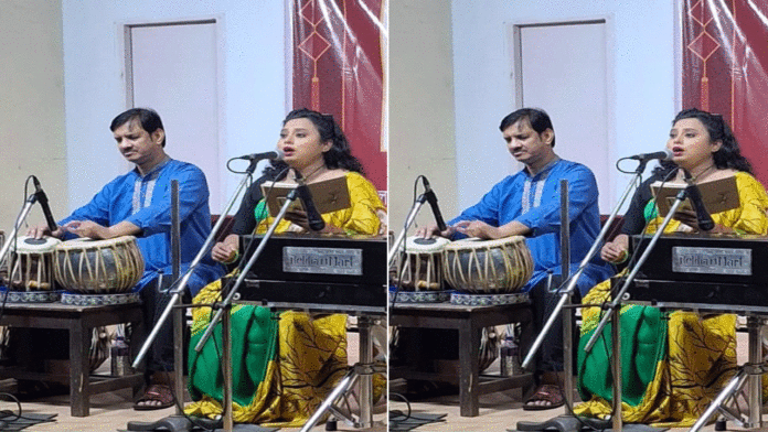 নিজস্ব সংবাদদাতা,দুর্গাপুরঃ- ২১ আগস্ট সকাল থেকেই বর্ষণসিক্ত ছিল শহর কলকাতা। সেই পরিবেশকে বৃদ্ধাঙ্গুষ্ট দেখিয়ে মহাসমারোহে ‘আর্চিক’ সাংস্কৃতিক সংস্থার উদ্যোগে আয়োজিত হলো মনোজ্ঞ সংস্কৃতিক অনুষ্ঠান – যাদবপুর বিশ্ববিদ্যালয়ের ‘ইন্দুমতি’ সভাগৃহে। অনুষ্ঠানে সংগীত পরিবেশনে অংশ নিলেন বুদ্ধদেব সেনগুপ্ত, ঋতুকণা ভৌমিক, পৃথা সরকার, কল্যাণী সিনহা, অঞ্জলি গাঙ্গুলী এবং সোমা দাস । শ্রুতি নাটক পরিবেশন করলেন অলক রায় ঘটক, চন্দন মজুমদার, মধুমিতা বসু, সাধনা রায়, শান্তনু ভৌমিক, হৈমন্তী রায় ও ইনা বাগচী। গীতিমঞ্জুরীর নিবেদন ছিল – নৃত্যগীতি আলেখ্য “বর্ষণসিক্ত চরণে মায়ের আগমন”। পাঠ্যাংশ ও সংগীতের দায়িত্ব পালন করলেন যথাক্রমে গীতালি চট্টোপাধ্যায় এবং শুভ্রজিত আদক। নৃত্য পরিবেশনে অংশ নিলেন সেবন্তী চট্টোপাধ্যায়, দ্যুতিপর্ণা দত্ত মঞ্জিরা গুপ্ত এবং মৃত্তিকা বসু। সেই সন্ধ্যার সামগ্রিক অনুষ্ঠানের মূল ভাবনা ও প্রযোজনার কৃতিত্ব অবশ্যই স্বরূপ পাল-এর।