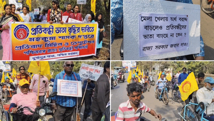নিজস্ব সংবাদদাতা,দুর্গাপুরঃ- রাজ্য সরকার সম্প্রতি ২০২৬-২৭ অর্থবর্ষের বাজেটে ‘লক্ষ্মীর ভাণ্ডার’ প্রকল্পের মাসিক ভাতা ৫০০ টাকা বাড়িয়েছে। পাশাপাশি রাজ্যের বেকার যুবক যুবতিদের জন্য চালু করা হয়েছে নতুন ভাতা যুব সাথী প্রকল্প। এর আগে দুর্গাপুজো উপলক্ষ্যে ক্লাবগুলির অনুদানও বাড়ানো হয়েছিল। এইভাবে বিভিন্ন সামাজিক সুরক্ষা প্রকল্পে আর্থিক সহায়তা বৃদ্ধি পেয়েছে ধাপে ধাপে। অথচ যাদের এই ভাতার বিশেষ প্রয়োজন সেই বিশেষভাবে সক্ষম মানুষদের ভাতা বাড়ায়নি সরকার। এমনই অভিযোগে ও ভাতা বৃদ্ধি সহ একাধিক দাবিতে সোমবার মহকুমা শাসক দপ্তরে বিক্ষোভ দেখাল পশ্চিমবঙ্গ রাজ্য প্রতিবন্ধী সম্মিলনী, দুর্গাপুর শাখা।