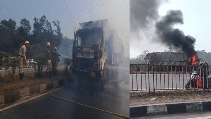 জাতীয় সড়কে চলন্ত ডাম্পারে দাউ দাউ করে জ্বলে উঠল আগুন