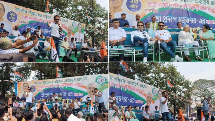 নিজস্ব সংবাদদাতাঃ- বিধানসভা নির্বাচনের নির্বাচনী প্রচারের আজ শেষ দিন। কাল বাদে পরশু রাজ্যে প্রথম দফার ভোট। প্রথম দফাতেই ভোট গ্রহণ পর্ব অনুষ্ঠিত হতে চলেছে পশ্চিম বর্ধমান জেলার মোট ৯টি বিধানসভায়। এদিন প্রচারের একেবারে শেষ লগ্নে তারকা প্রচারে নজর কাড়লেন দুর্গাপুর পূর্বের তৃণমূল কংগ্রেস প্রার্থী প্রদীপ মজুমদার।