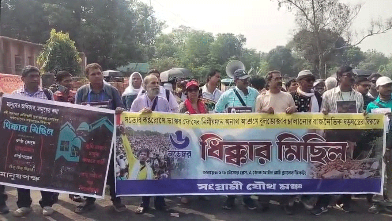 নিজস্ব সংবাদদাতা,দুর্গাপুরঃ- দুর্গাপুরের স্টিল টাউনশিপে একটি আধ্যাত্মি সংস্থার অনাথ আশ্রম ভাঙা নিয়ে উত্তেজনা। সম্পূর্ণ অনৈতিকভাবে রাতের অন্ধকারে ডিএসপি কর্তৃপক্ষ ওই অনাথ আশ্রম ভেঙে গুঁড়িয়ে দেয় বলে অভিযোগ। প্রতিবাদে বৃহস্পতিবার রাস্তায় নেমে ক্ষোভে ফেটে পড়ল শহরের বহু মানুষ।