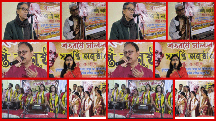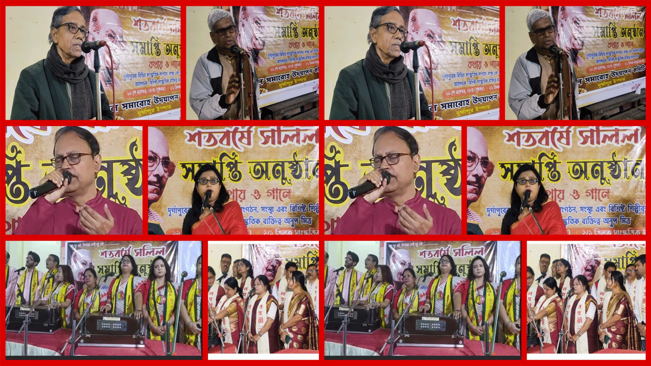 নিজস্ব সংবাদদাতা,দুর্গাপুরঃ- ভারতবর্ষের অমর সঙ্গীত স্রষ্টা সলিল চৌধুরীর জন্ম শতবর্ষ উদযাপিত হলো দুর্গাপুর ইস্পাত সলিল সমারোহ উৎসব কমিটির উদ্যোগে-গত বৎসর ১৯ নভেম্বর থেকে বর্ত্তমান বৎসরের ১৯ নভেম্বর পর্যন্ত উল্লেখযোগ্য সংখ্যক বর্ণময় অনুষ্ঠান আয়োজনের মাধ্যমে। ১৯ নভেম্বর এই মহান গীতিকার, সুরকারের ১০১ তম জন্মদিনে আয়োজিত অনুষ্ঠানের শুরুতে তাঁর প্রতিকৃতিতে পুষ্পার্ঘ্য অর্পণ করেন- বিশিষ্ট কবি,বুদ্ধিজীবি তথা সাংস্কৃতিক ব্যক্তিত্ব অনুপ মিত্র,রানীগঞ্জ বিধানসভার প্রাক্তন বিধায়ক রুনু দত্ত, দুর্গাপুর ২ কেন্দ্রের প্রাক্তন বিধায়ক সন্তোষ দেব রায়,বিশিষ্ট নাট্য ব্যক্তিত্ব দীপক দেব,সঙ্গীত শিল্পী বুদ্ধদেব সেনগুপ্ত, শ্রমিক নেতা সুখময় বসু,গণনাট্য আন্দোলনের অন্যতম নেতৃস্থানীয় ব্যক্তিত্ব সীমান্ত তরফদার,আশিসতরু চক্রবর্ত্তী,সাংস্কৃতিক সংগঠক কানাই বিশ্বাস প্রমুখ উল্লেখযোগ্য মানুষেরা। উল্লেখযোগ্য সাংস্কৃতিক অনুষ্ঠানের মধ্যে ছিল- দুর্গাপুর রম্যবীণা,লহরী,একত্র ইত্যাদি সংস্থার সম্মেলক সঙ্গীত , প্রণব মুখোপাধ্যায়,ঋতুকণা ভৌমিক,সোমনাথ বন্দ্যোপাধ্যায়,হেমন্ত মজুমদার,শ্রীরূপা চোঙদার প্রমুখ পরিবেশিত একক সংগীত,গৌতম চক্রবর্ত্তী,নন্দিনী বন্দ্যোপাধ্যায়ের আবৃত্তি,শিশু শিল্পী অন্বেষা, সানভি, আরাধ্যা, শ্রুতি, সুনেত্রা,অনুশীলা প্রমুখ পরিবেশিত নৃত্যানুষ্ঠান। সমগ্র অনুষ্ঠান সঞ্চালনায় ছিলেন দেবদাস সেন।