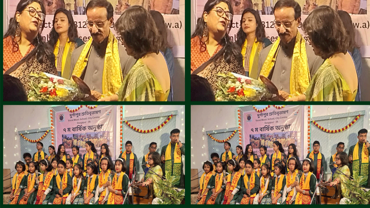 নিজস্ব সংবাদদাতা,দুর্গাপুরঃ- দুর্গাপুরের শ্রুতিবৃত্তায়ন ভোকাল মিউজিক স্কুলের সপ্তম বার্ষিক সঙ্গীতানুষ্ঠান আয়োজিত হলো ১৩ ই ডিসেম্বর সন্ধ্যায় নন- কোম্পানি হাউসিং কমিউনিটি হল এ। সূচনায় মঙ্গল প্রদীপ প্রজ্জ্বলনের মাধ্যমে আনুষ্ঠানিক উদ্বোধন করেন বিশিষ্ট সঙ্গীতশিল্পী বুদ্ধদেব সেনগুপ্ত।সম্বর্ধনা জ্ঞাপন করা হয় শ্রী সেনগুপ্ত এবং উপস্থিত বিশিষ্টজনদের ও। এরপর শ্রুতিবৃত্তায়নের বিভিন্ন বয়সের শিল্পী-শিক্ষার্থীরা একক এবং সম্মেলক সংগীত পরিবেশন করেন। ছিল নৃত্যানুষ্ঠান-ও। যন্ত্রাণুষঙ্গ সহযোগিতায় ছিলেন অরিজিৎ রায়, দীপায়ন চট্টোপাধ্যায় প্রমূখ। সমগ্র অনুষ্ঠানের পরিচালনায় ছিলেন সংস্থার অধ্যক্ষা কস্তুরী দত্ত। অনুষ্ঠান সঞ্চালনায় নিরলস ছিলেন- বিশিষ্ট বাচিক শিল্পী কাকলি দাশগুপ্ত।