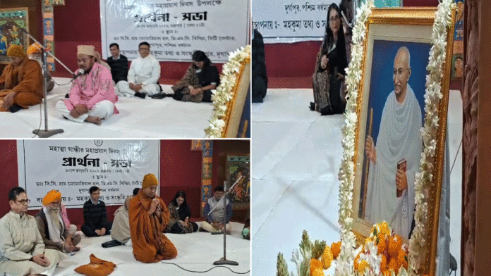 নিজস্ব সংবাদদাতা,দুর্গাপুরঃ- জাতির জনক মহাত্মা গান্ধীর প্রয়াণ দিবস উপলক্ষে এক অনন্য সম্প্রীতির ছবি ধরা পড়ল দুর্গাপুরে। এদিন মহকুমা তথ্য ও সংস্কৃতি দপ্তরের উদ্যোগে পুরনিগমের ডাঃ বি সি রায় মেমোরিয়াল হলে এক বিশেষ প্রার্থনা সভার আয়োজন করা হয়। যেখানে ধর্ম, বর্ণ, বিশ্বাসের সব ভেদাভেদ ভুলে একত্রিত হয়েছিলেন বিভিন্ন ধর্মের মানুষ।