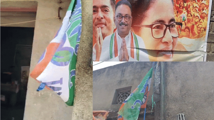 অভিযোগ সোমবার রাতে এলাকারই একটি বাড়িতে লাগানো তৃণমূলের দলীয় পতাকায় দুষ্কৃতীরা আগুন ধরিয়ে দেয়, সেই আগুন বাড়ির জলের পাইপেও লেগে যায়, বরাত জোরে বেঁচে যান বাড়ির লোকজন। এছাড়াও ণমূল প্রার্থীর সমর্থনে লেখা একটি ফ্লেক্সও দুষ্কৃতী ব্লেড দিয়ে কেটে দেয়।