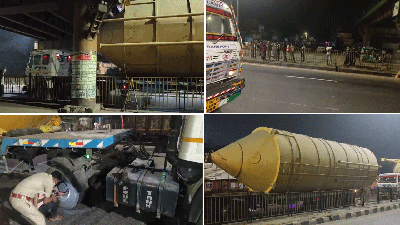 Homeএই বাংলায়বিশাল যন্ত্রাংশ নিয়ে উড়ালপুলের নিচে আটকে গেল ট্রেলার