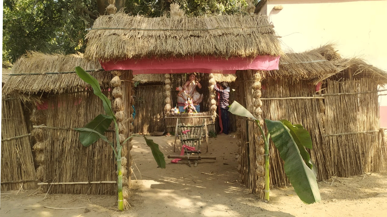 এবার ওদের সরস্বতী পুজোর ‘থিম’-এ ধরা পড়েছে পল্লীগ্রামের চিত্র। সরস্বতী মূর্তি পেশাদার শিল্পীর তৈরি করা হলেও ‘থিম’ ভাবনা ওদের নিজস্ব। বয়স অল্প হলেও নিজেদের হাতে তৈরি মণ্ডপ সজ্জার মধ্যেই অভিনব ভঙ্গিতে ফুটে উঠেছে পল্লীগ্রামের সেই পরিচিত চিত্র – গরুর গাড়ি, খড়ের চাল ইত্যাদি দেখলেই চোখ জুড়িয়ে যায়। যেকোনো পেশাদার দক্ষ শিল্পী এটা দেখে লজ্জা পেতে পারে। অল্প জায়গার মধ্যে তৈরি এই মণ্ডপ সজ্জা দেখতে সকাল থেকেই মণ্ডপের সামনে দর্শনার্থীদের ভিড় লেগেই আছে।