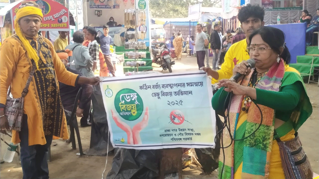 সৌভিক সিকদার, গুসকরা, পূর্ব বর্ধমান -: একটু সচেতন হলেই মশক বাহিত ডেঙ্গু, ম্যালেরিয়া সহ নানান জীবনহানি রোগের হাত থেকে আমরা সহজেই রক্ষা পেতে পারি। প্রশাসন বারবার সতর্ক করলেও আমরা সেগুলি গুরুত্ব দিইনা। এবার সঙ্গীতের মাধ্যমে মানুষকে সচেতন করার জন্য এগিয়ে এলেন বীরভূমের ‘রাঙ্গা ধূলি লোকসঙ্গীত ও বাউল সম্প্রদায়’- এর শিল্পীরা। এরা মূলত কেন্দ্র এবং রাজ্য সরকারের পক্ষ থেকে এই কাজটি করে থাকেন।
