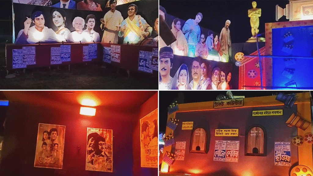 সংবাদদাতা,বাঁকুড়াঃ- এই তো করোনার কিছু আগে পর্যন্ত প্রিয় তারকার সিনেমা রিলিজ হলে ফার্স্ট ডে ফার্স্ট শো দেখতে সিনেমা হলে ভিড় জমাত সিনেমা প্রেমী মানুষ। করনো পরবর্তী ও উন্নত প্রযুক্তির এই সময়ে সে সব যেন এক অতীত কাহিনী। ওটিটি প্ল্যাটফর্মের দাপটে ছোট ছোট শহর থেকে বিলুপ্তির পথে সিনেমা হল। এখন তো সোজাসুজি ওটিটিতেও মুক্তি পাচ্ছে অনেক ছবি। আবার অনেক ছবি হলের বদলে ওটিটি-তে মুক্তি পেয়েও শোরগোল ফেলে দিচ্ছে। কোভিড-লকডাউনের দিনযাপন সেই যে ওটিটি দেখার অভ্যাস হয়ে গিয়েছে, সে আরাম ছেড়ে আর দর্শক বেরোতে চাইছেন না। হলের মতো এক্সপিরিয়েন্স না-ই বা হল! নিজের বাড়িতে বসে সুবিধেমতো সময়ে, আরামে সিনেমা দেখার অভ্যাস হয়ে গিয়েছে মানুষের বিশেষ করে জেন জি’র। অথচ এই সিনেমা , সিনেমা হল, তারকা এসব আগের প্রজন্মের কাছে আবেগের চেয়ে কিছু কম ছিল না। সেই আবেগকে সামনে রেখেই এবারের কালীপুজোয় খাতড়া শহরের ‘মেধাবী সঙ্ঘের’ কালীপুজো থিম ‘খাতড়া সিনেমা’।