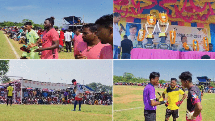 সংবাদদাতা,বাঁকুড়াঃ- দেশি-বিদেশি তারকা খেলোয়াড়দের নিয়ে খাতড়ার সিধু-কানু স্টেডিয়ামে শুরু হলো দু’দিনের ফুটবল উৎসব “রামরঞ্জন স্মৃতি কাপ-২০২৫”। খাতড়া জীবনপুর স্পোর্টিং ক্লাবের উদ্যোগে আয়োজিত এই দু’দিনের ফুটবল প্রতিযোগিতায় মোট ১৬টি দল অংশ নিয়েছে। শনিবার প্রতিযোগিতার উদ্বোধন হয়। এদিন দিনভর লিগ ম্যাচের খেলা দেখতে ভিড় জমিয়েছিলেন হাজার হাজার ফুটবলপ্রেমী মানুষ।