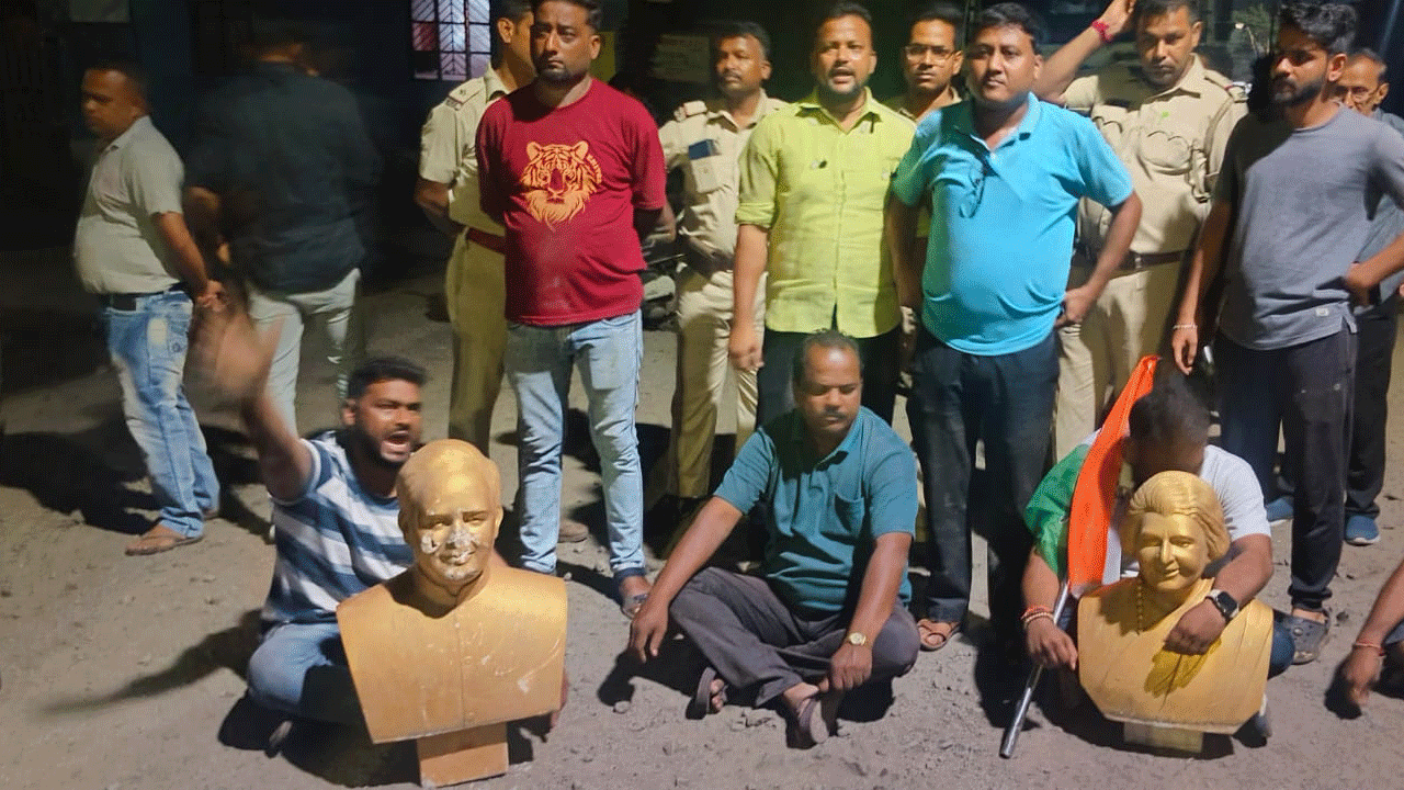 ইন্দিরা গান্ধী ও রাজীব গান্ধীর মূর্তি ভাঙ্গার চেষ্টার অভিযোগ, বিক্ষোভ