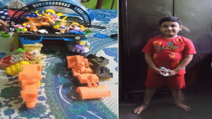 জ্যোতি প্রকাশ মুখার্জ্জী, উত্তরপাড়া, হুগলী -: শিশুটির বয়স কত হবে? খুব বেশি হলে চার! তার সমবয়সী একদল যখন টিভিতে কার্টুন দেখতে অথবা মোবাইলে গেম খেলতে এবং সেগুলি নিয়ে ভাবনার জগতে বিচরণ করতে ব্যস্ত তখন শিশুটি নিজের ভাঙা খেলনা সামগ্রী দিয়ে সৃষ্টি সুখের উল্লাসে মত্ত। কখনো সে তৈরি করে ফেলছে পুজোর মণ্ডপ, কখনো বা রথ। মণ্ডপ তৈরি করেই সে শান্ত থাকছেনা, মাটি দিয়ে তৈরি করছে প্রতিমা। সেটি মণ্ডপে স্থাপন করে পুজোর পাশাপাশি পুজোর শেষে প্রতিমা বিসর্জনও করছে। খেলনার সংখ্যা কম থাকায় একটা কাঠামো ভেঙে সে সেগুলো দিয়েই তৈরি করেছে রথ, দুর্গার মণ্ডপ সহ আরও অনেক কিছু। এখন সে ব্যস্ত কালীর মণ্ডপ তৈরি করতে। এমনকি পাশে গগন চুম্বী ফ্ল্যাট বাড়ি দেখে সেটাও সে তৈরি করার ইচ্ছে প্রকাশ করে ফেলেছে। আফসোস অত খেলনা তার কাছে নাই! এই শিশুটিই হলো হুগলীর উত্তরপাড়ার রূপায়ন ব্যানার্জ্জী, পরিবারের সবার আদরের তথা মা-বাবার নয়নের মণি রূপসোনা।