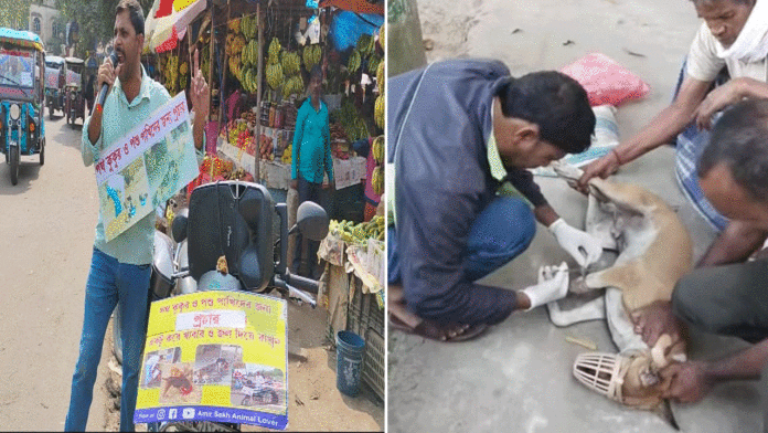 সাহেব পাল, মঙ্গলকোট, পূর্ব বর্ধমান -: ওরা পথ কুকুর – পথই ওদের জীবন, পথেই ওদের মরণ। দু’বেলা খাবার জোটেনা। চিকিৎসা তো দূরের কথা, সামান্য খাবারের জন্য কপালে জোটে গৃহস্থের লাঠিঝাঁটা। মাঝে মাঝে গরম ফ্যান ছুড়ে দেওয়া হয় ওদের শরীর লক্ষ্য করে। হোটেলের অথবা মিডডে মিলের ফেলে দেওয়া খাবার খেয়ে বড় অবহেলায় ওদের দিন কাটে। তবুও পৃথিবীতে এমন কিছু মানুষ আছেন ওদের জন্য যাদের হৃদয় কেঁপে ওঠে। এমনই একজন ব্যক্তি হলেন ভাতারের মুরাতিপুরের বাসিন্দা আমির সেখ, পশুপ্রেমী থেকেই তিনি আজ হয়ে উঠেছেন ‘বিনা পয়সা’র পশু চিকিৎসক।