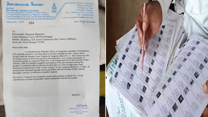 সৌভিক সিকদার, আউসগ্রাম, পূর্ব বর্ধমান -: কেন্দ্র সরকারের বঞ্চনা সত্ত্বেও রাজ্য সরকার নিজ উদ্যোগে গরীব মানুষদের জন্য বাড়ি তৈরি করে দিতে শুরু করেছেন। কিন্তু সেখানেও ঘটে গেল অবাঞ্ছিত বিপত্তি। কোনো এক অজ্ঞাত কারণে সংশ্লিষ্ট পোর্টাল থেকে আউসগ্রাম-১ নং ব্লকের প্রায় সাড়ে আট হাজার যোগ্য উপভোক্তার নাম মুছে যায়। বিষয়টি নজরে আসার সঙ্গে সঙ্গে মুখ্যমন্ত্রীর দৃষ্টি আকর্ষণ করে সমস্যার সমাধানের জন্য স্থানীয় বিধায়ক অভেদানন্দ থাণ্ডার তার উদ্দেশ্যে একটি চিঠি লেখেন। জানা যাচ্ছে দলের সর্বভারতীয় সাধারণ সম্পাদক অভিষেক ব্যানার্জ্জীর দপ্তর ছাড়াও পূর্ব বর্ধমানের জেলাশাসক আয়েশা রাণী এ এর উদ্দেশ্যেও একটি চিঠি লেখেন। আউসগ্রাম-১ নং ব্লক তৃণমূল সভাপতি শান্তা প্রসাদ রায়চৌধুরী জেলাশাসকের সঙ্গে সাক্ষাৎ করেন।