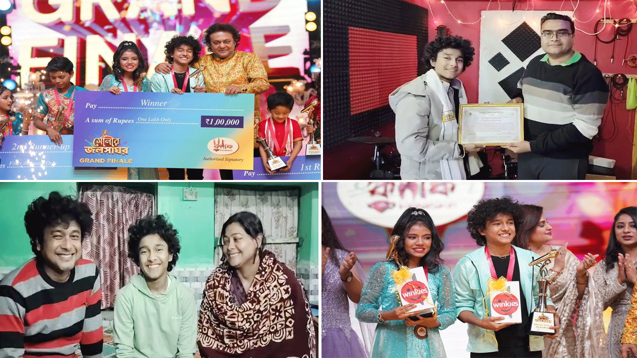 সংবাদদাতা,পুরুলিয়াঃ- সম্প্রতি বেসরকারি একটি বাংলা চ্যানেলে অনুষ্ঠিত সঙ্গীতমূলক জনপ্রিয় রিয়েলিটি শো “সোনার জলসাঘর”-এ চ্যাম্পিয়ান হয়েছে পুরুলিয়া মানবাজারের স্বপন সুব্রত হাইস্কুলের পড়ুয়া দুই খুদে শিল্পী সাগ্নিক সুপকার ও তিয়াসা হালদার। এই খুদে “রকস্টার জুটি” এখন শুধু পুরুলিয়া নয় বরং বাংলার গর্ব হয়ে উঠেছে। নতুন প্রজন্মের এই দুই তারকার একের পর এক রকিং পারফরম্যান্স রিয়েলিটি শোর মঞ্চ মাতিয়েছে। মূলত সাগ্নিকের গিটার আর তিয়াসার কণ্ঠের মিশ্রণে মনোমুগ্ধকর পরিবেশনা বাংলার মানুষের মন জয় করে নিয়েছে।