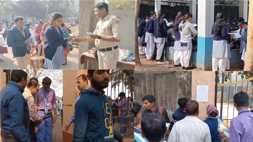 দুর্গাপুরঃ- এদিন সকাল থেকেই দুর্গাপুরের একাধিক পরীক্ষা কেন্দ্রে পরীক্ষার্থী ও অভিভাবকদের ভিড় লক্ষ্য করা যায়। বিধান নগর হাই স্কুল সহ বিভিন্ন কেন্দ্রে সকাল থেকেই পরীক্ষার্থীরা সময়মতো পৌঁছে যায়। পরীক্ষার্থীদের স্বাগত জানাতে ও উৎসাহ দিতে প্রশাসনের পক্ষ থেকে তাঁদের হাতে পেন ও ফুল তুলে দেওয়া হয়। নিরাপত্তা ও শৃঙ্খলা বজায় রাখতে প্রতিটি কেন্দ্রেই ছিল পুলিশের কড়া পাহারা।