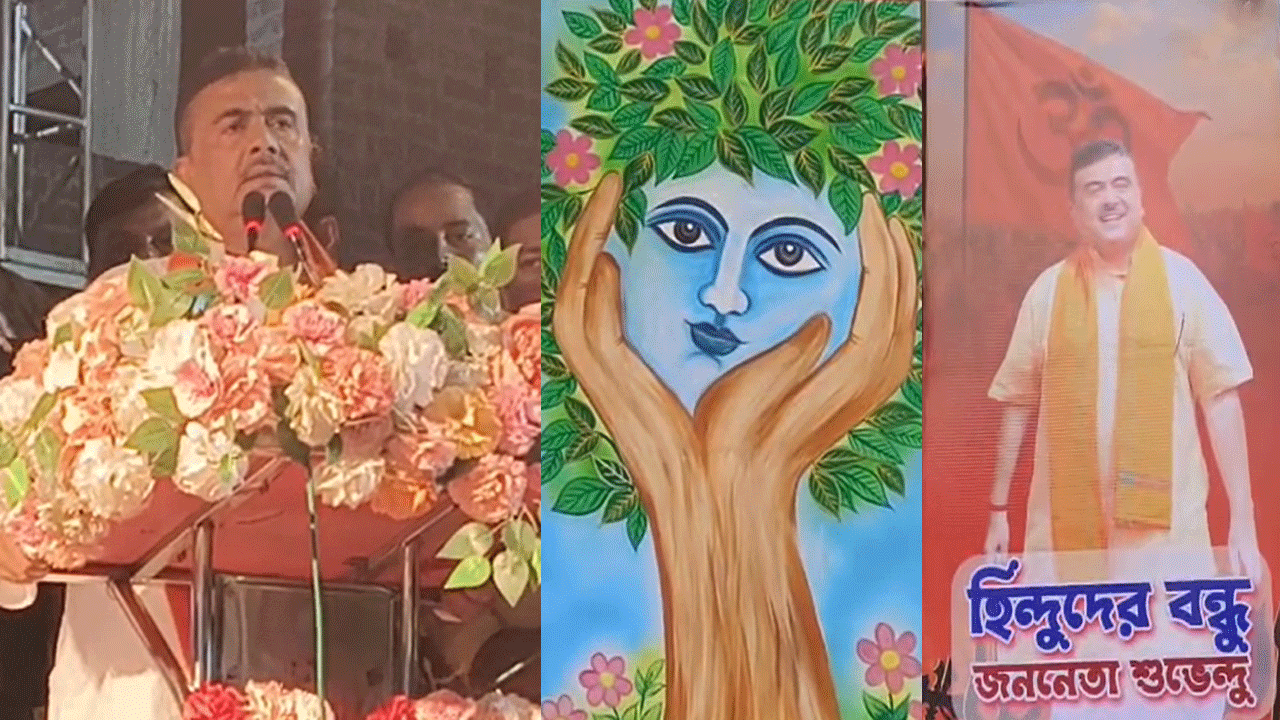 দুর্গাপুরে স্বপ্ন উড়ানের ছ বছরের জগদ্ধাত্রী পুজোর উদ্বোধনে আসেন রাজ্যের বিরোধী দলনেতা শুভেন্দু অধিকারী। তিনি মঞ্চে উঠতেই বিজেপির কর্মী সমর্থকরা তার হাতে তরোয়াল ও ত্রিশূল তুলে দেয়। তারপরেই তিনি এসআইআর ইস্যু নিয়ে তৃণমূলকে আক্রমণ করেন। তারপরেই রাজ্যের মুখ্যমন্ত্রীকে আক্রমণ করে বলেন, “মা কালীকে উনি প্রিজন ভ্যানে তুলেছেন। আর ভাতা, ভিক্ষাতে তিনি চটকদারির রাজনীতি করেন। কারণ উনি জানেন ওনার সাথে সলিড ৩৫% ভোট রয়েছে।”