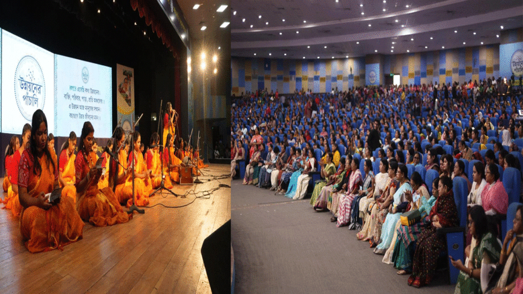 সংবাদদাতা, কলকাতা:- মঙ্গলবার কলকাতার নজরুল মঞ্চে সর্বভারতীয় তৃণমূল কংগ্রেসের উন্নয়নের পাঁচালি প্রচার অভিযানের নজরকাড়া উপস্থাপন হল, যেখানে দলের মহিলা নেতৃত্বের উদ্যোগে আয়োজিত এই অনুষ্ঠানে ৩,৫০০-এরও বেশি মহিলা উপস্থিত ছিলেন। ঠাসা প্রেক্ষাগৃহে উপস্থিত প্রত্যেক মহিলার হাতে পাঁচালি-এর একটি করে কপি তুলে দেওয়া হয় এবং পশ্চিমবঙ্গের তৃণমূল কংগ্রেস সরকারের ১৫ বছরের উন্নয়ন যাত্রার বর্ণনা করে যখন তাঁরা সকলে একসঙ্গে ছন্দে ছন্দে পাঠ শুরু করেন, তখন সেই ছন্দে গোটা প্রেক্ষাগৃহ মুখরিত হয়ে ওঠে।